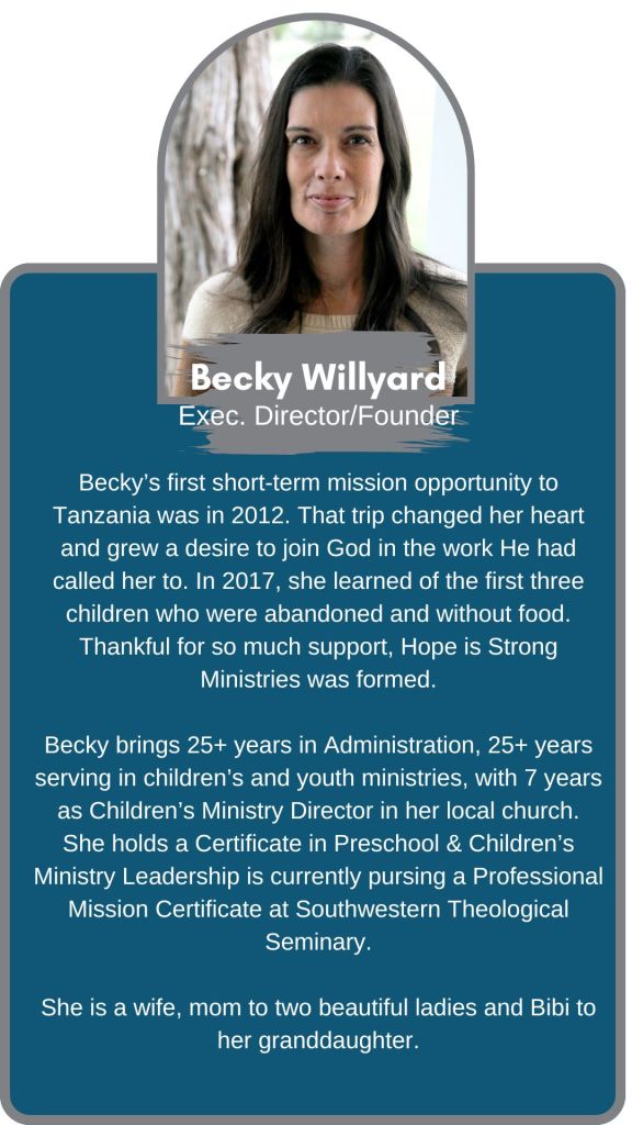 Hope is Strong Ministries is grateful to have an incredible team of volunteers. An organization is only as strong as the people with the same passion and purpose. We are blessed to have a clear mission and some of the best people around the world.